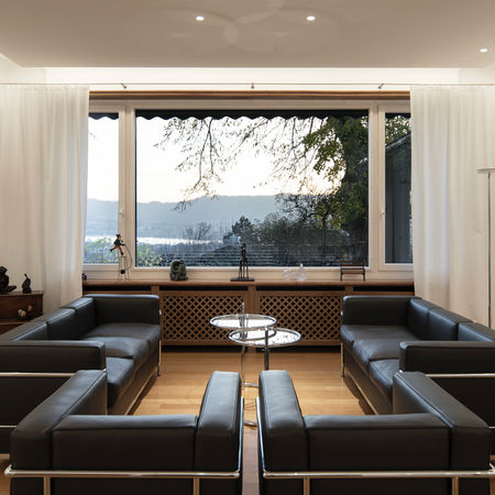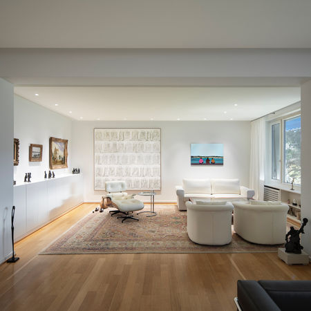 Das Lichtdesign nahm sich dieser Aufgabe an und entwickelte in Zusammenarbeit mit den Architekten und der Bauherrschaft eine einfache und überzeugende Lösung. Pro Raum wurde eine abgehängte Decke ausgeführt, welche alle Lichtwerkzeuge aufnimmt und den Raum in völlig anderem Licht erstrahlen lässt. Je nachdem welche Leuchtengruppe eingeschaltet ist und wie hell diese leuchtet, wird der Raum anders interpretiert.