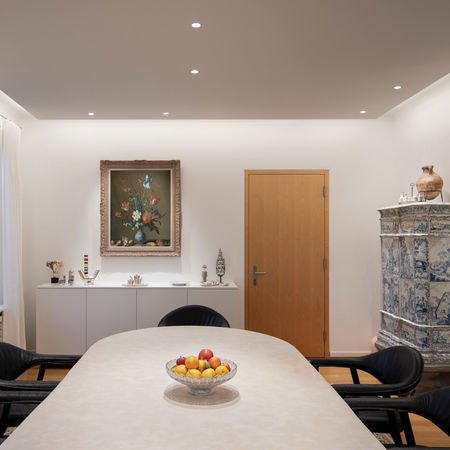 Die bestehenden Wohnräume wurden grundlegend saniert, wobei der Charakter des Hauses beibehalten werden sollte. Der Bauherrschaft war es ein grosses Anliegen, dass die neue Beleuchtung die Räume mit ausreichend hellem Licht belebt und trotzdem zurückhaltend ist. Objektleuchten waren für sie kein Thema.